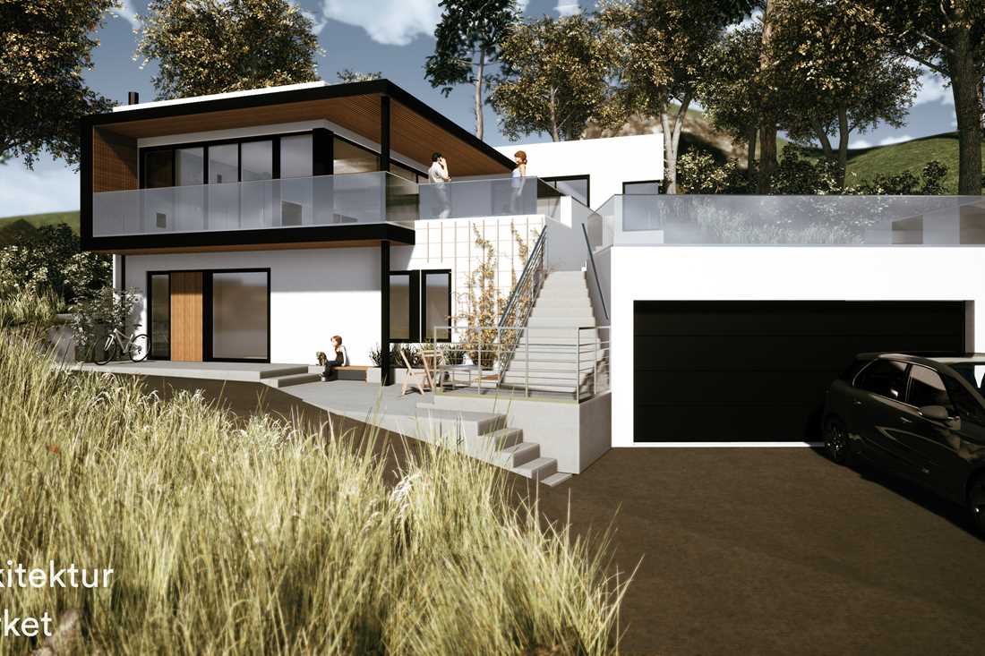 Eiendommen ligger flott til i en vestvendt skråning med panoramautsikt over Oslo-fjorden i Son. Boligen består av to etasjer, hvor hovedetasjen byr på stor romlighet med flott utsikt fra kjøkken og stuedel. Utearealene er tilpasset til boligens underetasje og garasjetak. Underetasjen består av sekundærrom med blant annet stue, soverom, bad og bod. Boligen har direkte inngang fra garasjen. Dempede materialvalg med detaljer som fremhever byggets formspråk.